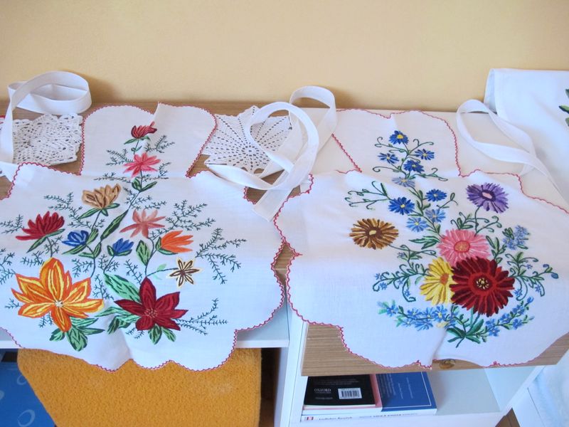 Popri zamestnaní sa musela doma obracať okolo gazdovstva. Po večeroch zas jej ruky boli zaneprázdnené ručnými prácami. Stále sa podieľa na vyhotovovaní šumiackeho ženského kroja. Štrikuje a vyšíva šavolky a hantuchy. Obrusy, dečky, prestierania, vankúše a obrazy ktorých má nespočetné množstvo vyšívala nielen na panamu, látky ale aj na domáce plátno precízne a pedantne.